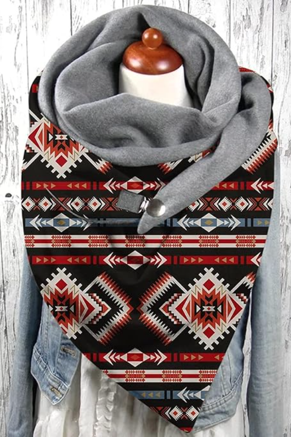 Geometric Universal Buckle Comfortable Double-Layer Prints Scarf