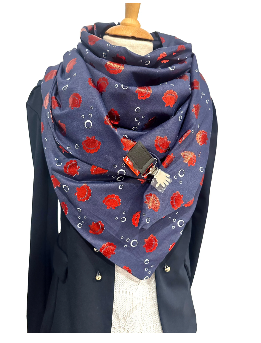 Deep blue coral red ocean scarf
