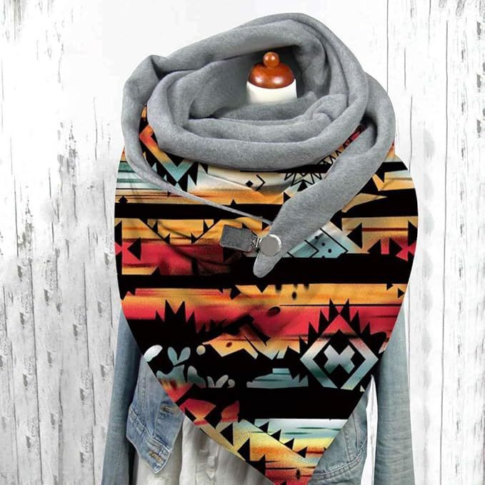 Geometric Universal Buckle Comfortable Double-Layer Prints Scarf